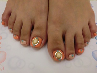 (ジェルでのペディキュアと足裏の角質除去)