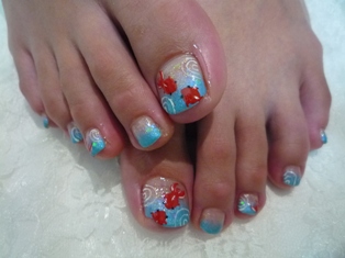 涼し気なブルーのフレンチ。親指の金魚がポイント!