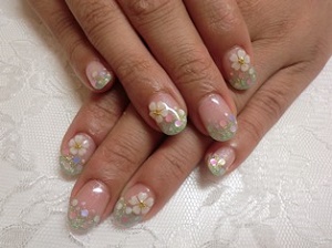 ラメグラデーションにはこんなアートの組み合わせもとってもキュートですよ(^^)/