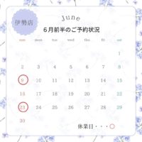 【伊勢店】6月前半のご予約状況